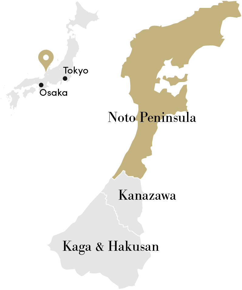 The remote Noto Peninsula in northern Ishikawa extends about 100 kilometers into the Sea of Japan. Its secluded location and rustic charm make an ideal escape from Kanazawa and Japan's other major cities. The area is home to beautiful coastal scenery, quaint fishing villages, thriving agricultural traditions, and centuries-old craft cultures. The main centers, Wakura Onsen and Wajima, each have a relaxed atmosphere and make ideal bases for exploring the area.