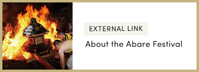 The Abare Festival, held every summer in the Ushitsu area of the Noto Peninsula, is also known as the “Rampage Festival” or the “Fire and Violence Festival.” The festival, which takes place on the first Friday and Saturday of each July, is a violent and boisterous celebration of the eradication of a contagious disease from the area in the mid-1600s. It is the first festival of the year featuring towering lantern floats called kiriko that are a hallmark of summer events in Noto.