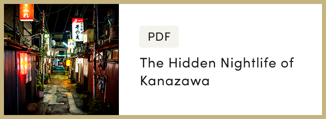 Chuo Mishokugai is a tightly packed collection of 20 small bars and restaurants nestled deep in the backstreets of Katamachi, Kanazawa’s entertainment district. The retro atmosphere evokes the feel of Kanazawa from decades ago.