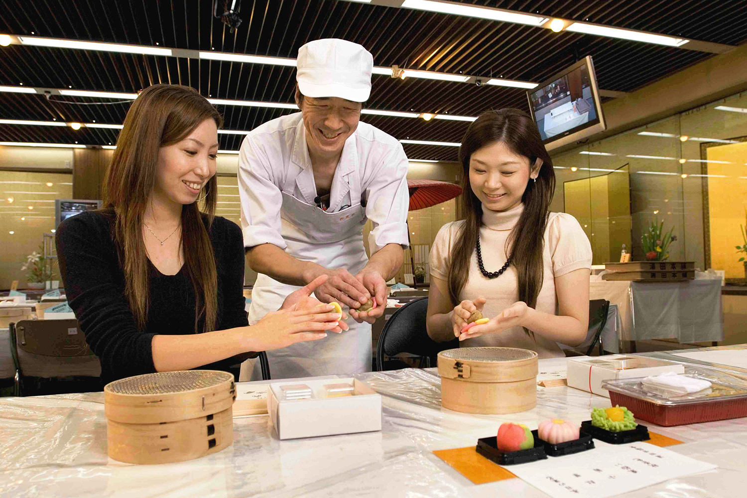 The center allows visitors the chance to create their own traditional confections and crafts. Activities include decorating tableware with gold leaf, etching glass, and making Japanese confections.