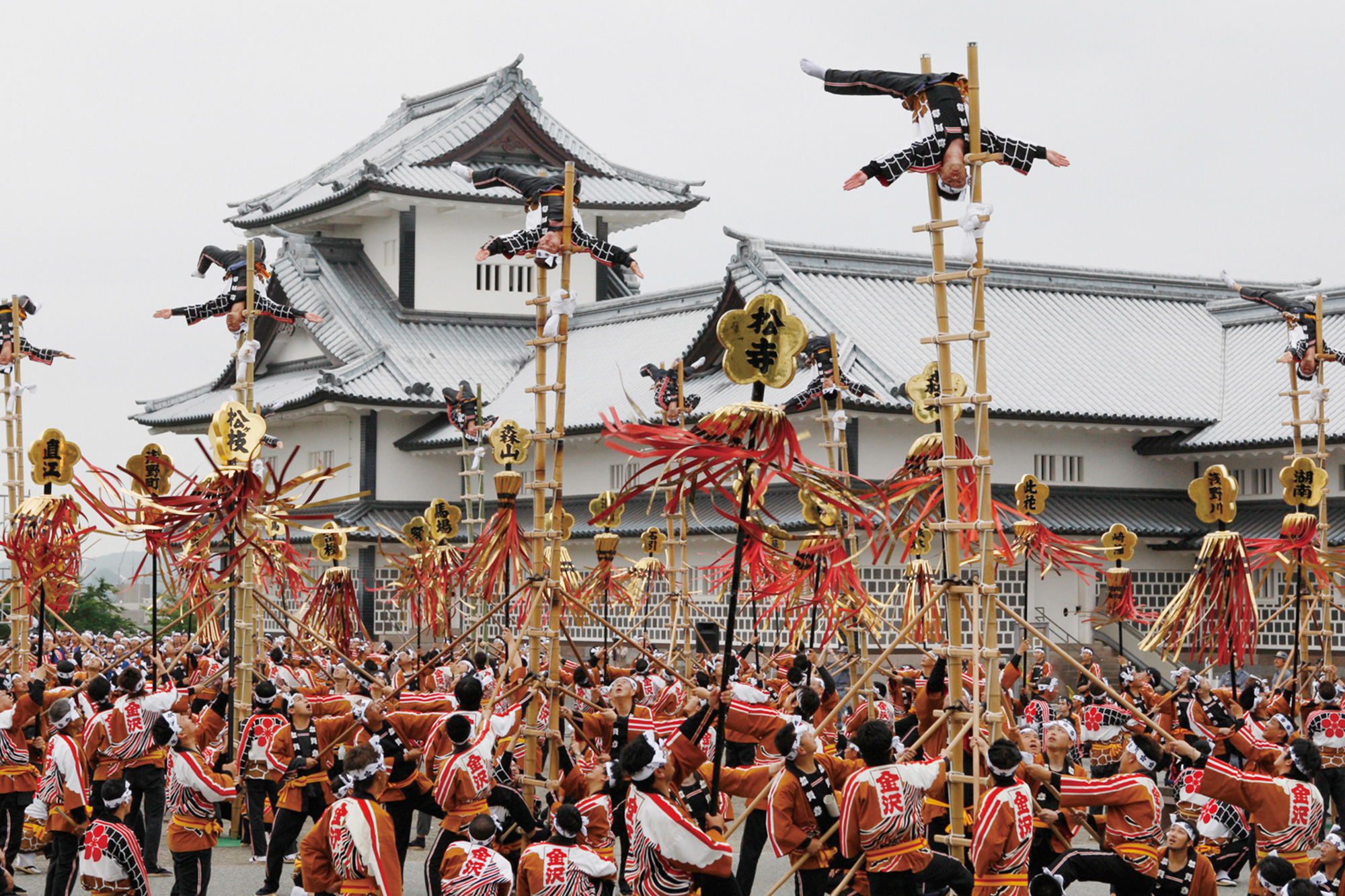 Every January, a thousand local firefighters gather at Kanazawa Castle for the Kaga-tobi Dezomeshiki Festival.