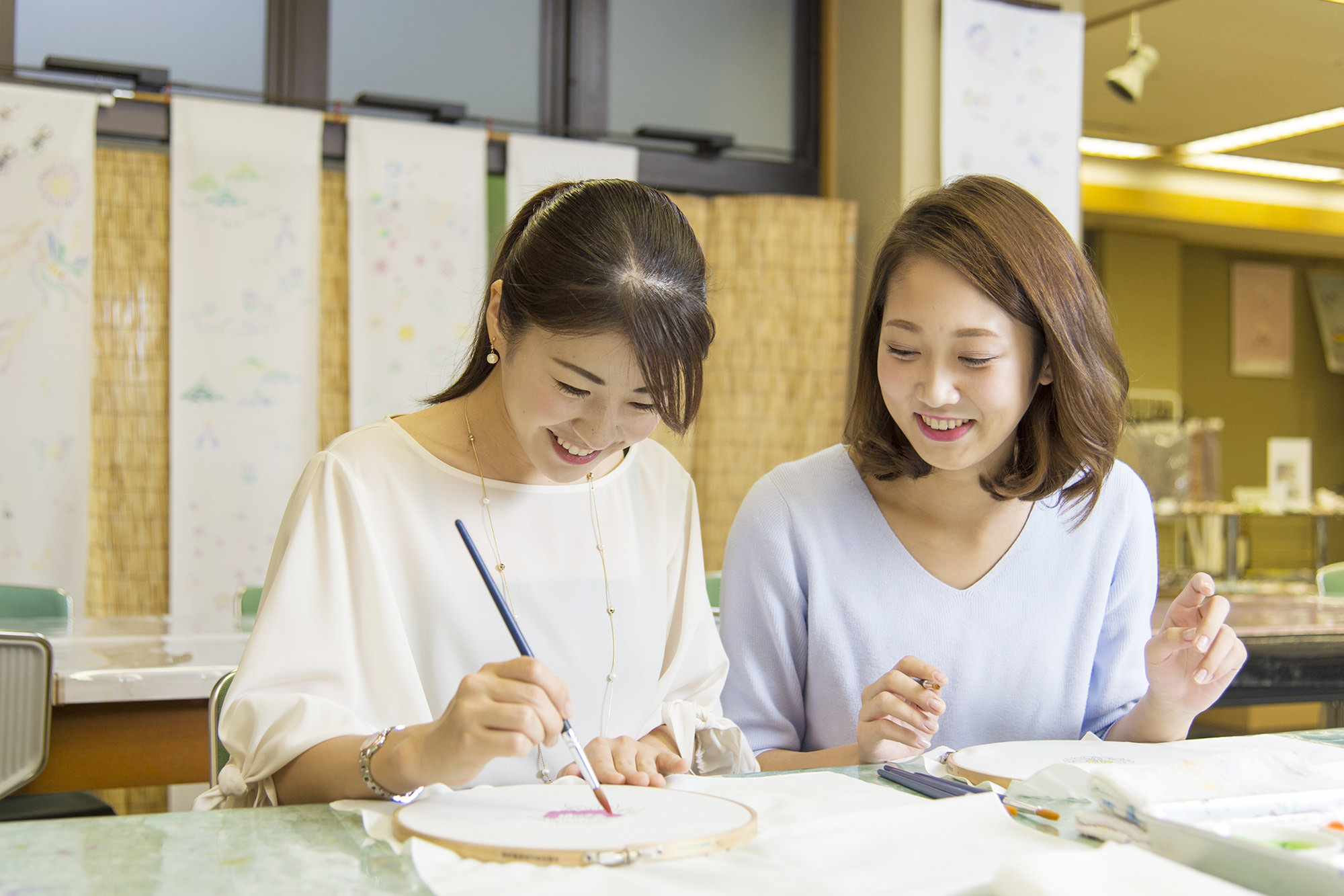 Various studios in Ishikawa offer experiences that range from wearing Kaga-yuzen kimono and yukata to dyeing items such as handkerchiefs or tote bags.
