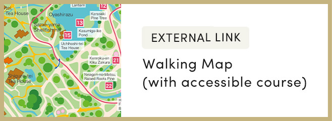 The garden’s appearance changes dramatically with the seasons. In spring, cherry blossoms form a pastel canopy over the walking path starting from the entrance facing Kanazawa Castle. In summer, carpets of green moss flourish in the woods below the pavilion on Yamazaki Hill. In autumn, the Japanese maples and zelkovas in the southeastern part of the garden burst into gold, crimson, and russet colors. In winter, gardeners tie up trees with bamboo and rope supports called yukizuri to help them weather the region’s heavy snowfall and maintain their painstakingly cultivated shape.