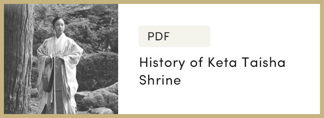 Keta Taisha is believed to have existed in some form for over 2,000 years. Its name is first found in the eighth-century Man’yoshu, the earliest collection of Japanese poetry. The oldest structures standing today include the shinmon gate from 1584 and the haiden worship hall from 1654.