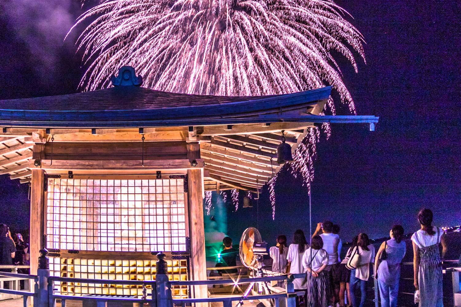 Katayamazu Onsen, one of the hot-spring towns that make up Kaga Onsen, holds a fireworks festival of considerable length each summer. Starting in early August, fireworks are launched over Lake Shibayama each night for the whole month.