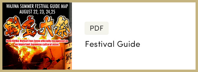 The last festival is the Wajimazaki-jinja Shrine Festival, held on August 25. Lanterns in the shape of shrimp and sea bream celebrate this fishing village's livelihood. This celebration again culminates with the falling of a large torch. If the torch falls towards the mountains, the next year is said to bring a good harvest, and if it falls towards the sea, the fish will be plentiful.