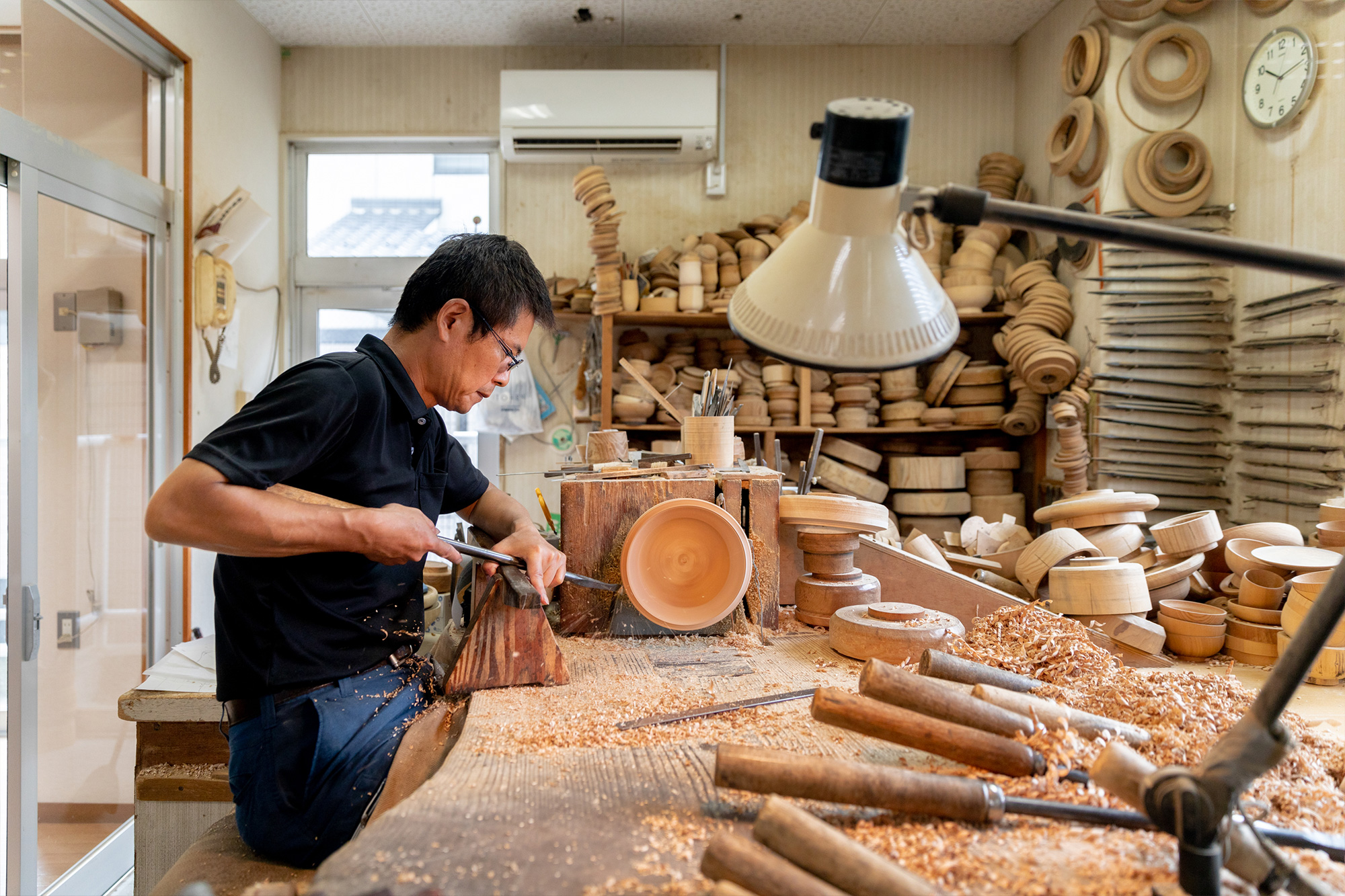 Adjacent to the Urushi-za is a training institute, the only school dedicated to woodturning in Japan. Visitors can see apprentices and masters at work in the studios.