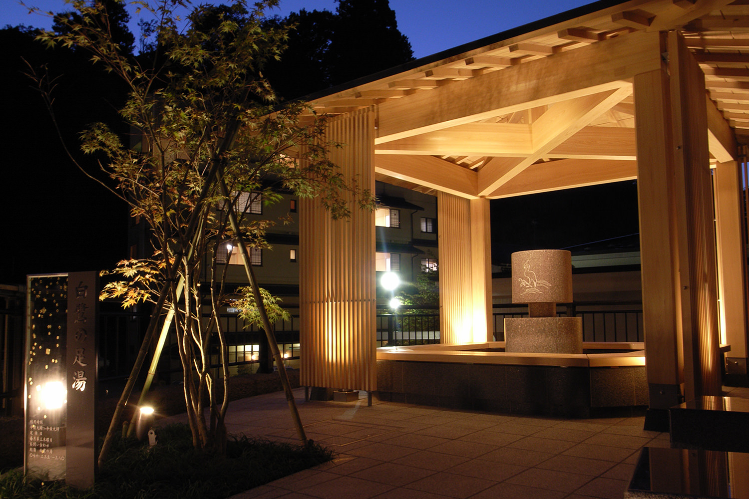 Overnight visitors can stay at one of nine traditional ryokan inns serving distinctive local cuisine. Most of these ryokan are small and pride themselves on warm, individualized service. One guesthouse is also available for solo and budget travelers. Daytrippers can enjoy the Shirasagi no Yu public bathhouse and the free adjacent footbath.