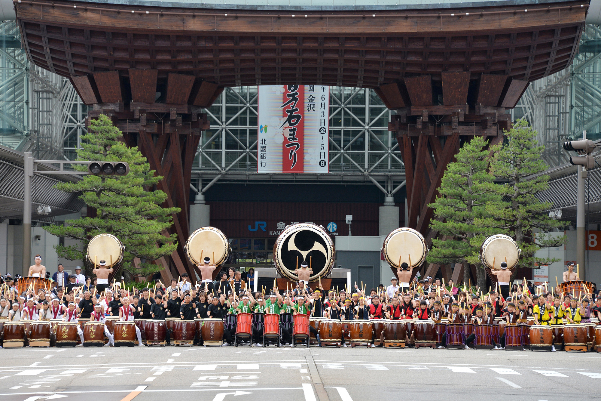 金澤市最大型的祭典稱作「金澤百萬石祭」,紀念加賀藩(現今的石川縣和周邊地區)於 1583 年誕生。祭典包含太鼓表演、能劇、舞獅,和穿著江戶時代服裝的演員遊行,6 月的第一個週末舉行。