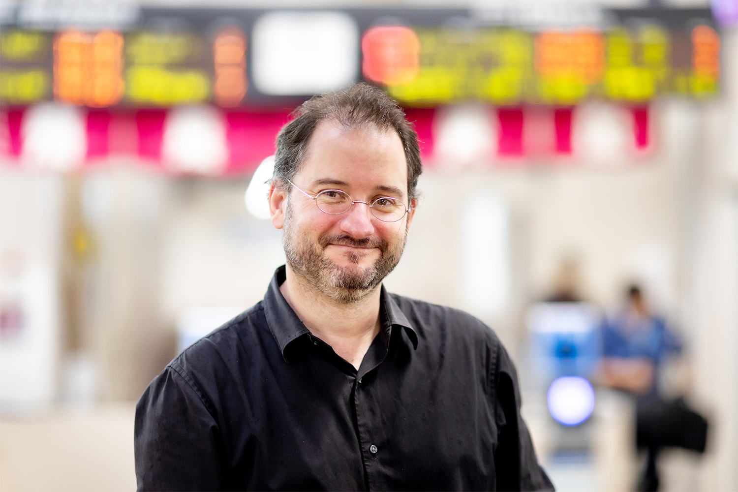 我的妻子是這裡人。我們是在法國讀書時認識的,然後 2006 年搬來這裡。我從 2016 年開始在加賀溫泉車站的資訊中心工作。